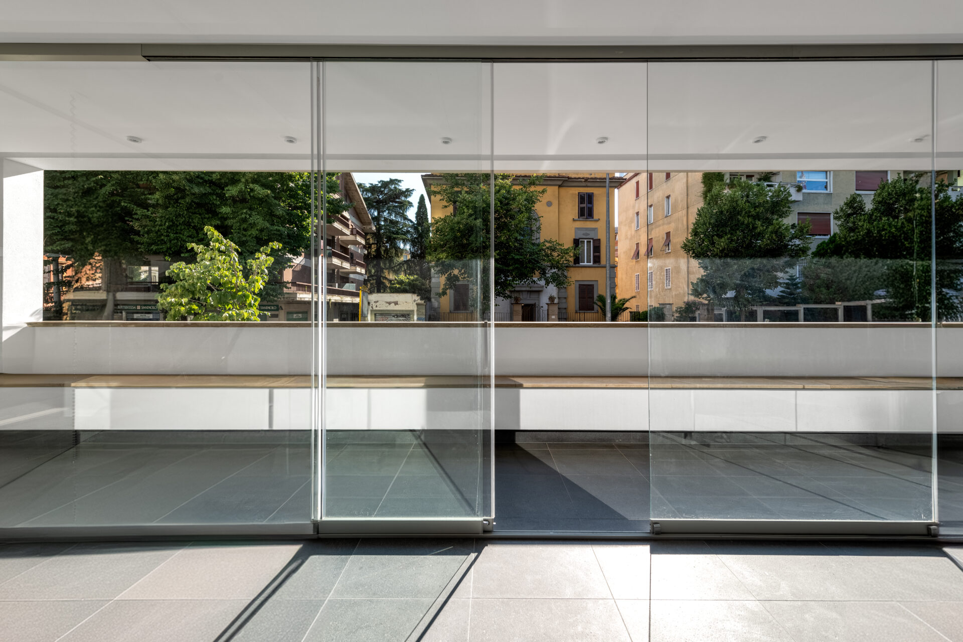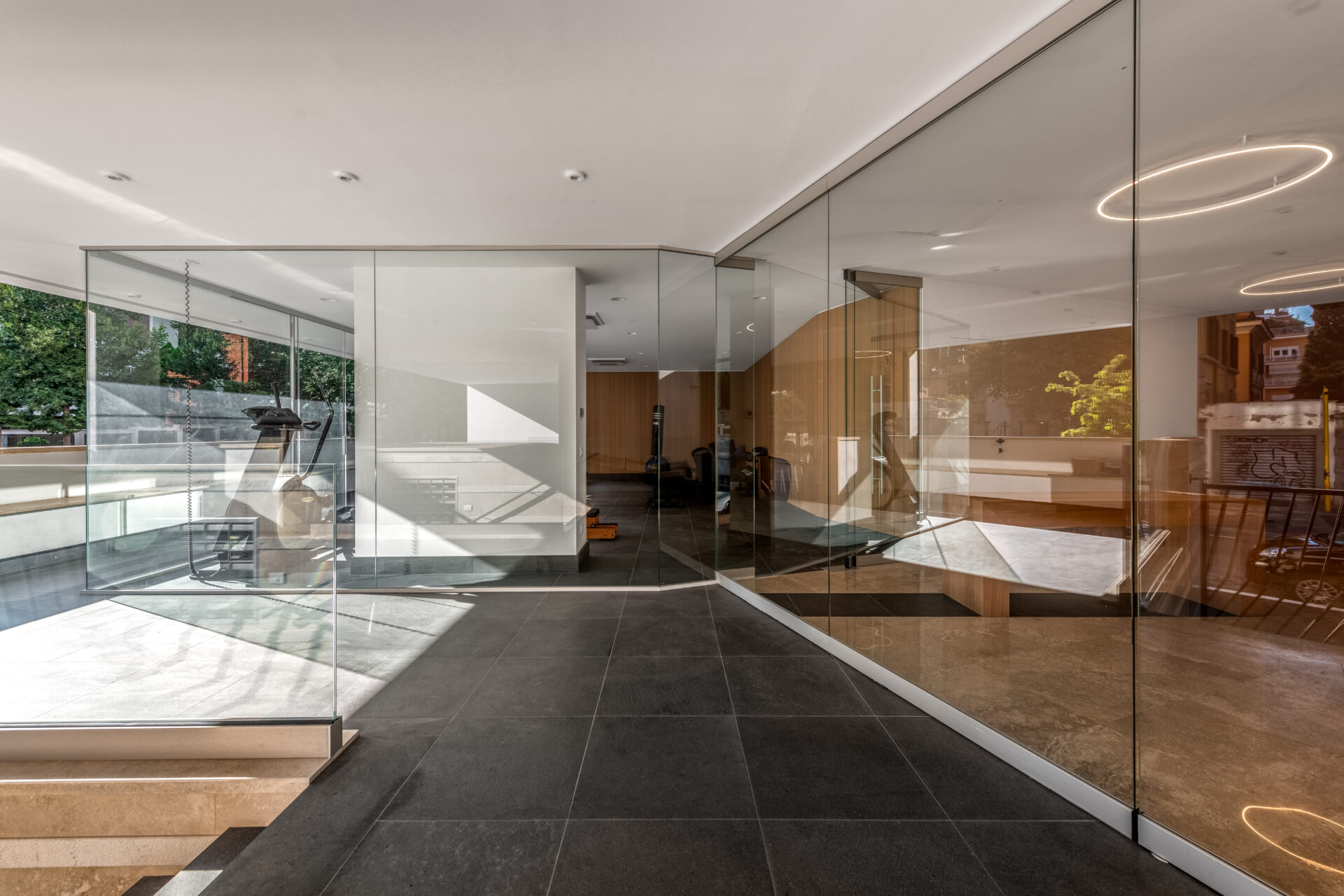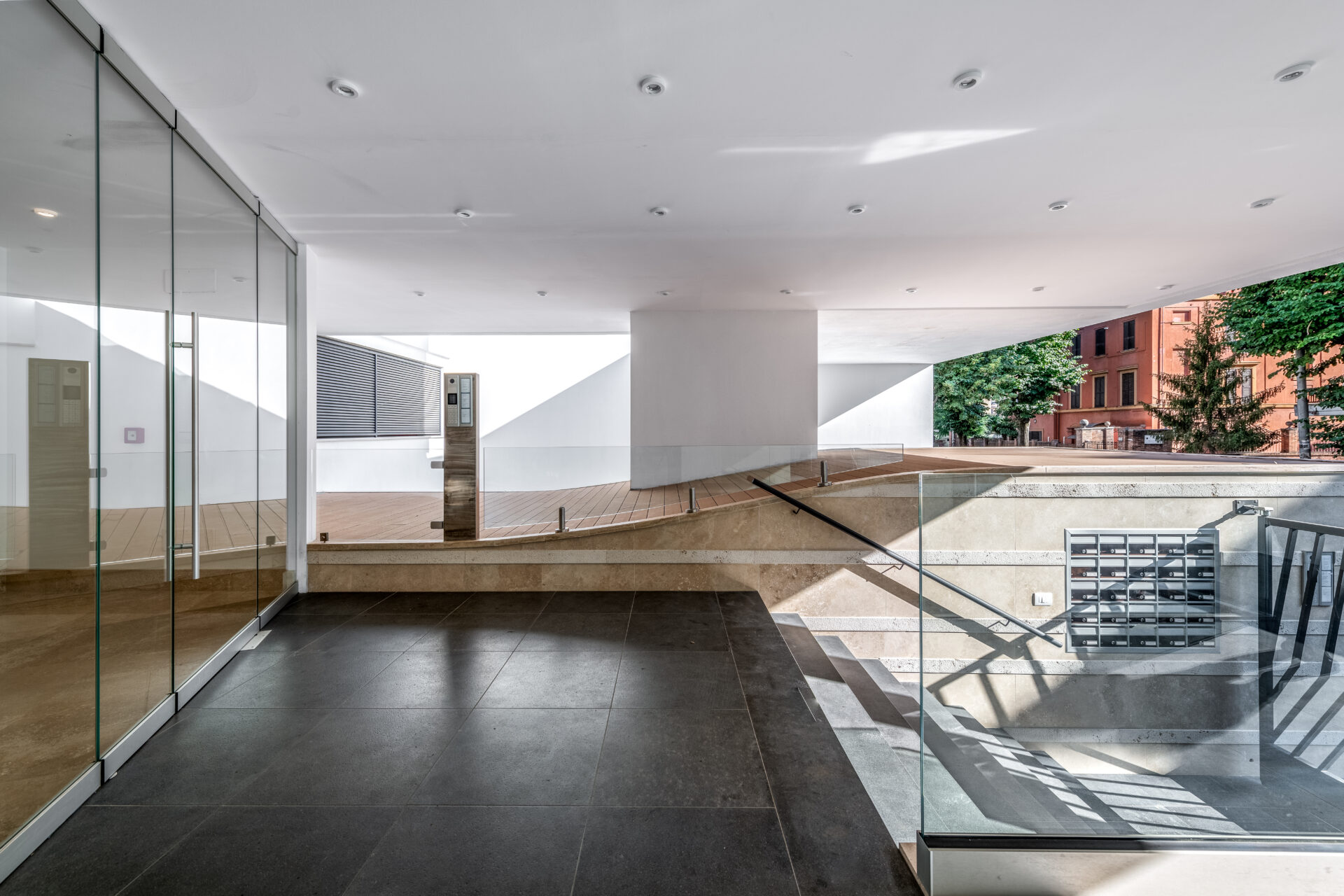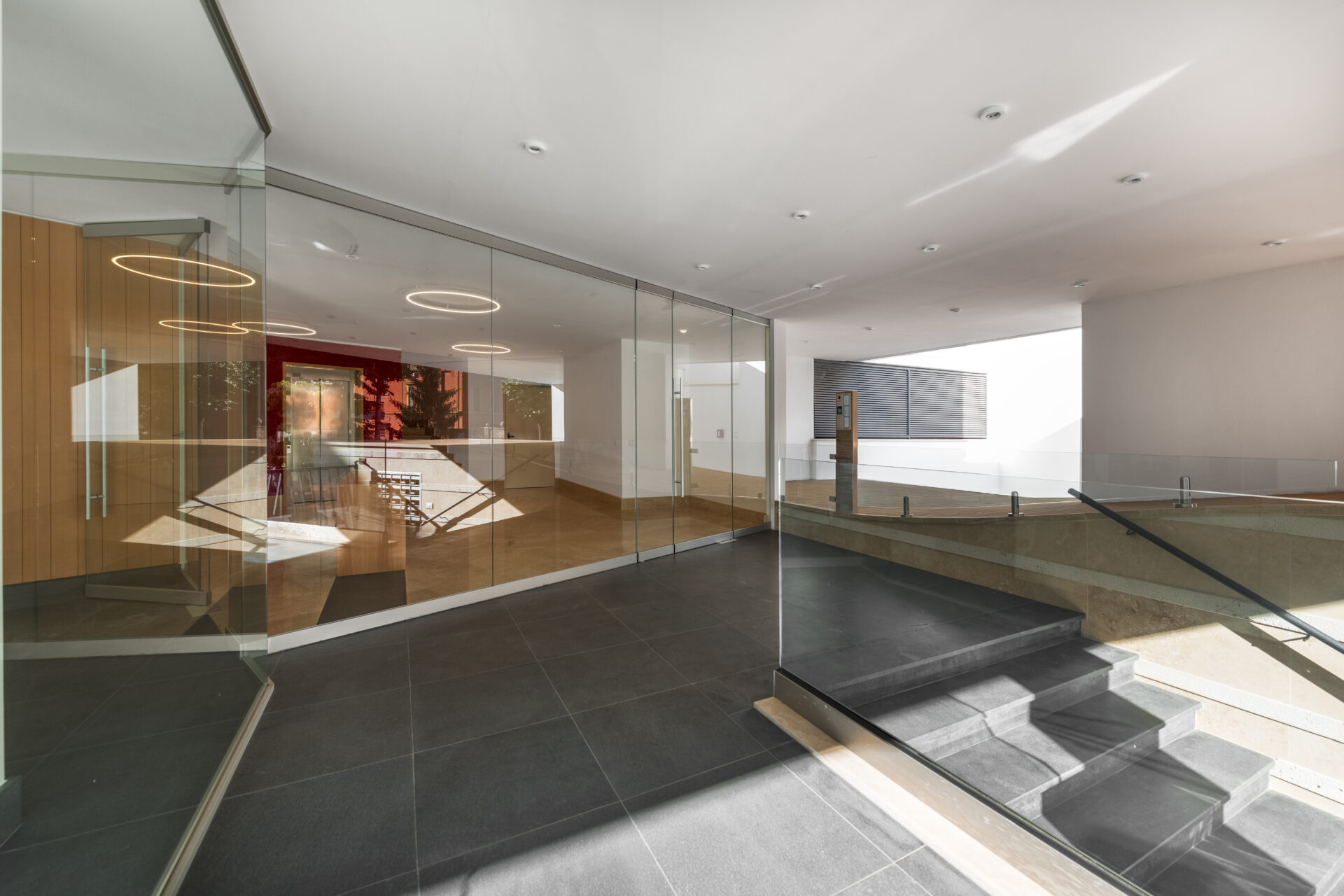 All’interno dell’androne d’ingresso trovano spazio le nostre vetrate divisorie con parti fisse e porte a battente o scorrevoli, soluzioni che coniugano funzionalità e design, pensate per delimitare gli ambienti mantenendo la continuità visiva. Le superfici vetrate possono essere trasparenti o parzialmente satinate, con trattamenti specifici per il controllo solare e l’ottimizzazione dell’efficienza acustica.