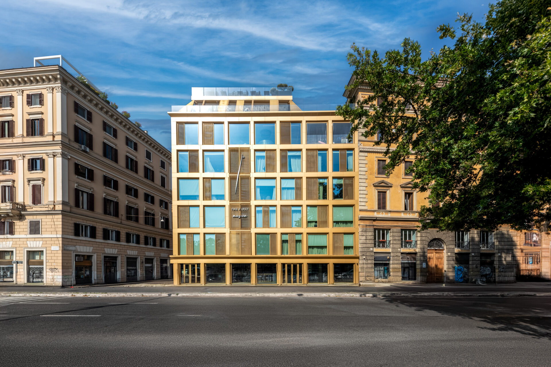 Il concept progettuale ruota attorno alla gestione della luce naturale, alla qualità visiva degli spazi e all’uso del colore oro come elemento distintivo: una tonalità che, partendo dalle facciate, si riflette e si diffonde negli ambienti interni, creando continuità tra esterno e interno.